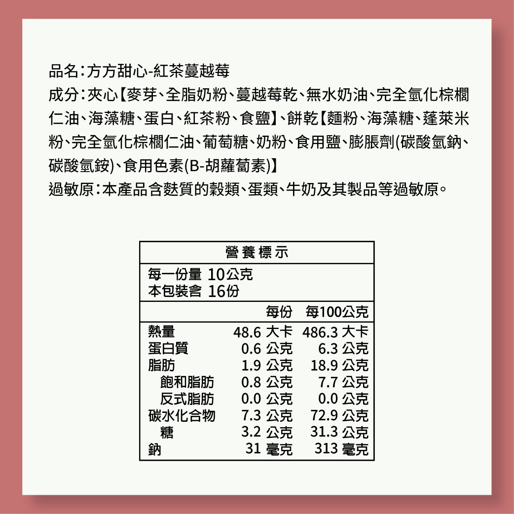 ►嚴選南投魚池「台茶18號」揉合酸甜蔓越莓 ►餅體酥香,略帶鹹香,更襯內餡層次 ►無添加人工香料,茶香自然回甘
