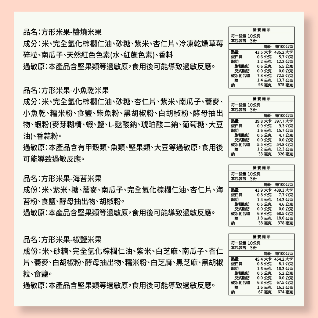 喜歡鹹口味米果的你,一定不能錯過這盒人氣爆棚的【曉曉派對禮盒】! 嚴選台灣71號霧峰香米製作,搭配各式鹹香風味,一口咬下酥脆不膩,適合午後解饞、下酒搭茶,還能當作伴手好禮,送禮自用兩相宜。