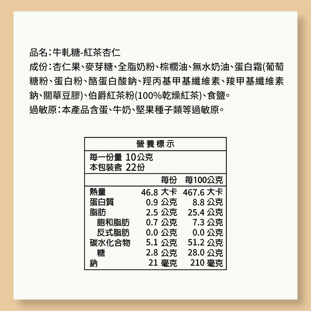 牛軋糖體揉合紅玉紅茶與阿薩姆紅茶,讓茶香層層堆疊,入口先是柔和奶香,接著紅茶韻味慢慢散開,尾韻溫潤回甘。