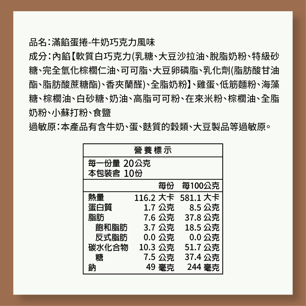 ►濃郁奶香 × 可可香氣,黃金比例調和 ►外層酥脆、內餡滑順,咬感細膩柔潤 ►無添加過度甜味,甜度剛剛好 (18gx10支)