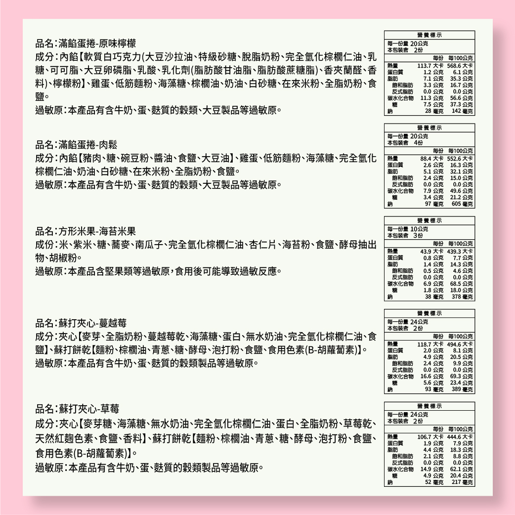 從濃郁巧克力到果香莓果、從經典肉鬆到清爽蘇打,這款「莓香酥脆盒」網羅曉翮流域最受歡迎的三大系列:滿餡蛋捲、蘇打夾心、方形米果。每種都是經典口味代表,一口酥、一口甜,香氣交錯,為你打開鹹甜平衡的完美派對。